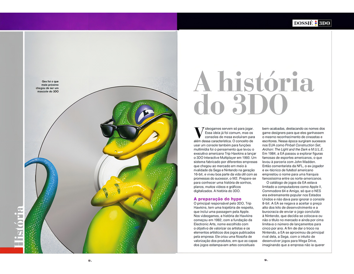 O console que queria mudar o mercado Em um tempo em que os videogames eram “apenas” plataformas de jogos, a The 3DO Company queria ir além e oferecer uma central de diversões multimídia. Talvez por ter sido a ideia certa na hora errada ou por problemas administrativos, essa ambição gerou uma história conturbada e marcante. Conheça esses segredos do 3DO, seus jogos e muitas curiosidades.