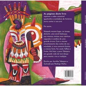 As páginas deste livro repetem o saber ancestral igualzinho a contadora de histórias ouviu contar a sua avó. Foi assim…Naquele mesmo lugar, no tempo distante, uma anciã balançou sua maraca, entoou seus cânticos sagrados à sombra de uma grande árvore. Com o mesmo encantamento das noites de céu estrelado, a nova semente brotou e cresceu forte, fez caule, folhas e frutos. Até hoje, o povo Tabajara em grande roda de toré dança para manter viva a tradição. Escrito por Auritha Tabajara e ilustrado por Rodrigo Mafra.