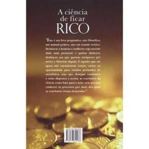 “Cem anos depois de serem apresentados aos leitores, os princípios descritos em A ciência de ficar rico continuam válidos e serviram de inspiração para a obra O segredo, de Rhonda Byrne. Wattles apresenta algumas leis que regem o passo a passo para se alcançar a riqueza. Uma vez conhecidas e obedecidas, essas leis levam o homem à riqueza com precisão matemática. Para isso, o homem precisa aprender a pensar de modo certo. Ter a ideia das coisas que se quer, sem conceitos vagos ou nebulosos. Não basta um desejo generalizado de ser rico, para que seja eficiente. É importante saber o que se quer e ser claro e preciso. Mas não se pode confiar somente no pensamento, sem se organizar para agir. Unir o pensamento à ação é fundamental. Este é mais do que um livro necessário, é um livro extremamente atual. “”Este é um livro pragmático, não filosófico; um manual prático, não um tratado teórico. Destina-se a homens e mulheres cuja necessidade mais premente é ganhar dinheiro; destina-se aos que querem enriquecer primeiro e filosofar depois. E àqueles que até agora não encontraram tempo, meios ou oportunidade para estudos profundos de metafísica, mas que desejam resultados e estão dispostos a aceitar as conclusões da ciência como base para a ação, sem precisar conhecer os processos por meio dos quais as conclusões foram alcançadas.”” “