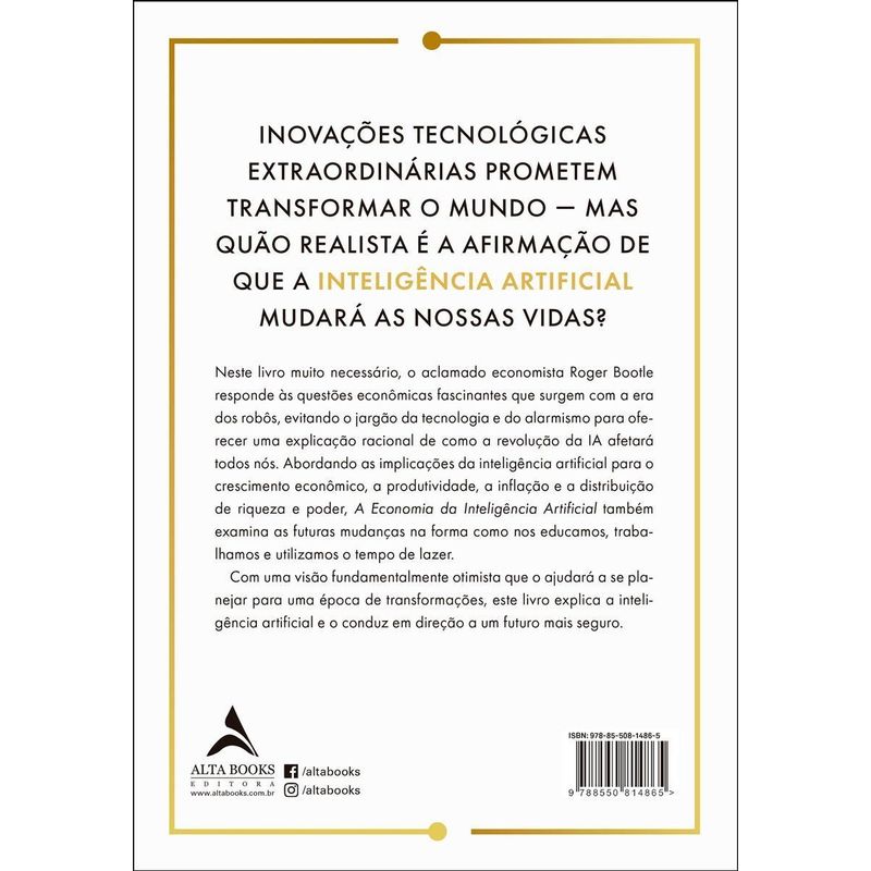 Inovações tecnológicas extraordinárias prometem transformar o mundo — mas quão realista é a afirmação de que a inteligência artificial mudará as nossas vidas? Neste livro muito necessário, o aclamado economista Roger Bootle responde às questões econômicas fascinantes que surgem com a era dos robôs, evitando o jargão da tecnologia e do alarmismo para oferecer uma explicação racional de como a revolução da IA afetará todos nós. Abordando as implicações da inteligência artificial para o crescimento econômico, a produtividade, a inflação e a distribuição de riqueza e poder, A Economia da Inteligência Artificial também examina as futuras mudanças na forma como nos educamos, trabalhamos e utilizamos o tempo de lazer. Com uma visão fundamentalmente otimista que o ajudará a se planejar para uma época de transformações, este livro explica a inteligência artificial e o conduz em direção a um futuro mais seguro.