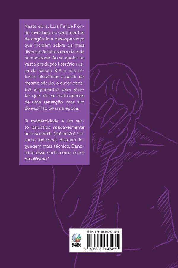 Após o sucesso de A era do ressentimento, Luiz Felipe Pondé lança A era do niilismo “A modernidade é um surto psicótico razoavelmente bem-sucedido (até então). Um surto funcional, dito em linguagem mais técnica. Denomino esse surto como a era do niilismo.” Em A era do niilismo: notas de tristeza, ceticismo e ironia, Pondé investiga os sentimentos de angústia e desesperança que incidem sobre os mais diversos âmbitos da vida e da humanidade. Ao se apoiar na vasta produção literária russa do século XIX e nos estudos filosóficos a partir do mesmo século, o autor constrói argumentos para atestar que não se trata apenas de uma sensação, mas sim do espírito de uma época.