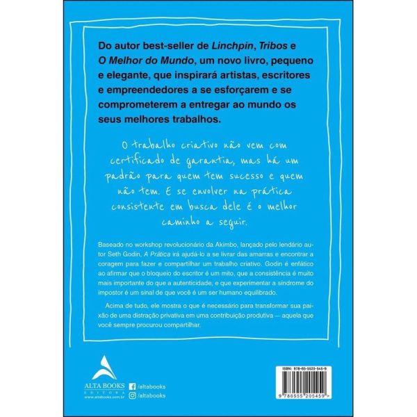 Do autor best-seller de Linchpin, Tribos e O Melhor do Mundo, um novo livro, pequeno e elegante, que inspirará artistas, escritores e empreendedores a se esforçarem e se comprometerem a entregar ao mundo os seus melhores trabalhos. O trabalho criativo não vem com certificado de garantia, mas há um padrão para quem tem sucesso e quem não tem. E se envolver na prática consistente em busca dele é o melhor caminho a seguir. Baseado no workshop revolucionário da Akimbo, lançado pelo lendário autor Seth Godin, A Prática irá ajudá-lo a se livrar das amarras e encontrar a coragem para fazer e compartilhar um trabalho criativo. Godin é enfático ao afirmar que o bloqueio do escritor é um mito, que a consistência é muito mais importante do que a autenticidade, e que experimentar a síndrome do impostor é um sinal de que você é um ser humano equilibrado. Acima de tudo, ele mostra o que é necessário para transformar sua paixão de uma distração privativa em uma contribuição produtiva — aquela que você sempre procurou compartilhar. SOBRE O AUTOR É um empreendedor, autor best-seller e palestrante. Mas, acima de tudo, Seth é um professor. Além de lançar um dos mais populares blogs do mundo, escreveu dezenove best-sellers, incluindo O Melhor do Mundo, Linchpin, Purple Cow, Tribos e What To Do When It’s Your Turn. Seu mais recente livro, Isso é Marketing, foi um best-seller instantâneo em vários países.