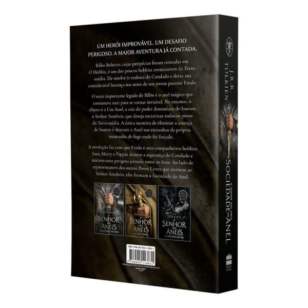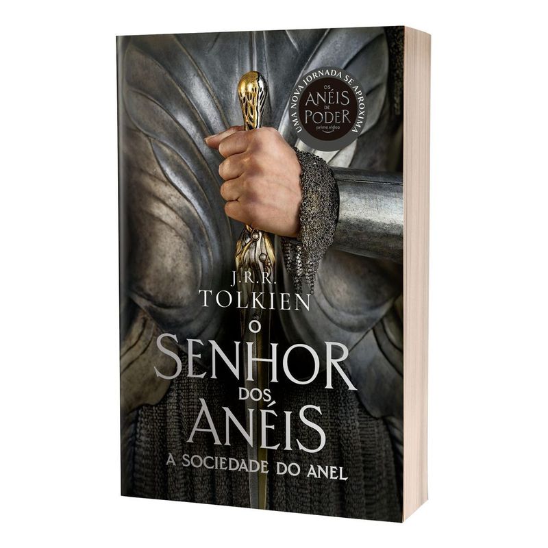 O volume inicial de O Senhor dos Anéis, lançado originalmente em julho de 1954, foi o primeiro grande épico de fantasia moderno, conquistando milhões de leitores e se tornando o padrão de referência para todas as outras obras do gênero até hoje. A imaginação prodigiosa de J.R.R. Tolkien e seu conhecimento profundo das antigas mitologias da Europa permitiram que ele criasse um universo tão complexo e convincente quanto o mundo real. A Sociedade do Anel começa no Condado, a região rural do oeste da Terra-média onde vivem os diminutos e pacatos hobbits. Bilbo Bolseiro, um dos raros aventureiros desse povo, cujas peripécias foram contadas em O Hobbit, resolve ir embora do Condado e deixa sua considerável herança nas mãos de seu jovem parente Frodo. O mais importante legado de Bilbo é o anel mágico que costumava usar para se tornar invisível. No entanto, o mago Gandalf, companheiro de aventuras do velho hobbit, revela a Frodo que o objeto é o Um Anel, a raiz do poder demoníaco de Sauron, o Senhor Sombrio, que deseja escravizar todos os povos da Terra-média. A única maneira de eliminar a ameaça de Sauron é destruir o Um Anel nas entranhas da própria montanha de fogo onde foi forjado. A revelação faz com que Frodo e seus companheiros hobbits Sam, Merry e Pippin deixem a segurança do Condado e iniciem uma perigosa jornada rumo ao leste. Ao lado de representantes dos outros Povos Livres que resistem ao Senhor Sombrio, eles formam a Sociedade do Anel. Alguém uma vez disse que o mundo dos leitores de língua inglesa se divide entre os que já leram O Senhor dos Anéis e os que um dia lerão o livro. Com esta nova tradução da obra, o fascínio dessa aventura atemporal ficará ainda mais evidente para os leitores brasileiros, tanto os que já conhecem a saga como os que estão prestes a descobrir seu encanto. Em comemoração à estreia da aguardada série O Senhor dos Anéis: Os Anéis de Poder do serviço de streaming Prime Video, novas capas foram lançadas para os três volumes da maior obra de J.R.R. Tolkien. Na capa de A Sociedade do Anel, temos a figura da Elfa Galadriel (Morfydd Clark) segurando uma adaga com o desenho das Duas Árvores de Valinor em Aman. Na série acompanharemos Galadriel e grandes nomes do legendário da Terra-média como o Alto Rei dos Noldor, Gil-galad (Benjamin Walker), Elrond o Meio-elfo (Robert Aramayo), Celebrimbor (Charles Edwards), Durin VI (Owain Arthur) e Isildur (Maxim Baldry), desbravando diferentes locais como o reino de Lindon, a cidade de Eregion, as Mansões de Moria e a ilha de Númenor. Além disto as regiões de Eriador, Rhovanion e Mordor também serão apresentadas por grandes diretores, como J.A. Bayona. Ainda veremos os antepassados dos amados e pequeninos hobbits na figura dos Pés Peludos, como no caso de Elanor “Nori” Brandyfoot (Markella Kavenagh).