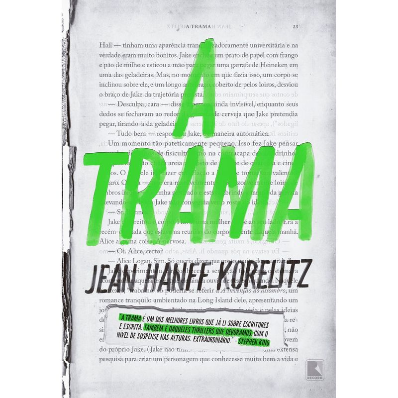 Um escritor fracassado se torna best-seller com uma história roubada de um aluno arrogante. O que poderia dar errado? A trama é um engenhoso suspense psicológico sobre um livro bom demais para não ser publicado. Jacob Finch Bonner já foi um jovem e promissor romancista, com um primeiro livro publicado por uma editora respeitável. Hoje, ele é professor de escrita criativa em um curso de quinta categoria e luta para manter o que lhe resta de respeito próprio. Ele não escreve — muito menos publica — nada bom há anos. Quando Evan Parker, seu aluno mais arrogante, anuncia que não precisa da ajuda de Jacob porque o enredo do livro que está escrevendo é sucesso garantido, o primeiro impulso do professor é descartar a afirmação como um típico arroubo narcisista. Mas então… ele ouve o tal enredo.Jacob retorna à trajetória descendente de sua própria carreira e se prepara para a publicação bombástica do primeiro romance de Evan Parker, mas isso nunca acontece. Quando Jacob descobre que seu ex-aluno morreu sem terminar o livro, faz o que qualquer escritor que se preze faria com uma história como essa — uma história que precisa ser contada de qualquer maneira. Ele rouba a ideia.Em poucos anos, todas as previsões de Evan Parker se tornam realidade, mas é Jacob o autor que aproveita a onda. Ele agora é rico, famoso, elogiado e lido no mundo todo. Porém, no auge de sua gloriosa vida nova, chega um e-mail, o primeiro de uma sequência de ataques aterrorizantes e anônimos: “Você é um ladrão”, o e-mail diz.Na tentativa de descobrir quem o está ameaçando e esconder a verdade de seus leitores e seus editores, Jacob começa a investigar e a aprender mais sobre seu falecido aluno — e o que ele descobre o surpreende e o apavora. Quem era Evan Parker e como ele teve a ideia de escrever aquele romance? Qual é a verdadeira história por trás dessa trama? Quem roubou de quem? “A trama de A trama — o melhor suspense do ano — é boa demais para ser revelada.” — The Washington Post“A trama é um dos melhores livros que já li sobre escritores e escrita. Também é daqueles thrillers que devoramos, com o nível de suspense nas alturas. Extraordinário.” — Stephen King“Fascinante e absolutamente perturbador. Vai sair voando das prateleiras.” — Kirkus Reviews“Engenhoso, tenso, fascinante. Terminei em cinco horas.” — Lisa Jewell“Que livro fantástico. Além de ser uma história de mistério contada com perfeição, também é uma sátira especialmente hábil da cena literária.” — Malcolm Gladwell“O enredo de Korelitz é diabolicamente sagaz, e eis a maior reviravolta de todas: que um livro sobre um escritor possa ser tão cheio de suspense e tão divertido.” — People“Deixa a gente imaginando, tentando adivinhar, e também pensando sobre ambição, fama e propriedade intelectual.” — The New York Times Book Review“Perversamente divertido e assustadoramente sombrio… Merece todos os louros.” — The Wall Street Journal“Korelitz merece aplausos por sua própria trama perfeita.” — Publishers Weekly“Uma história diabolicamente irresistível de ambição desenfreada.” — Oprah Daily