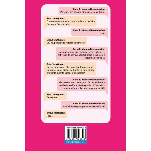 Nova comédia romântica adulta da autora de Melhor do que nos filmesmostra como uma mensagem enviada por engano pode levar à pessoa certa Depois de ser demitida e descobrir que seu namorado estava tendo um caso com uma colega de trabalho, Olivia decide fechar esse ciclo desastroso queimando as cartas que seu ex lhe escrevia. Ela só não esperava que, ao fazer isso, acabaria incendiando o prédio inteiro. Sem emprego, sem casa e sem namorado, Olivia vai morar com o irmão e o amigo irritante — e extremamente gato — dele, Colin Beck. Tudo parece estar dando errado, mas, quando ela recebe uma mensagem sensual de um número desconhecido, sua vida começa a ficar mais emocionante. O que deveria ter sido um engano acaba se transformando num relacionamento envolvente — mesmo que ela não saiba a identidade do Cara do Número Desconhecido. Colin Beck sempre considerou Olivia a irmã mais nova e insuportável do seu melhor amigo. Mas aquela garotinha destrambelhada que ele conhecia se tornou uma mulher atraente e divertida. Quando Olivia se muda para seu apartamento e uma vontade incontrolável de ficar cada vez mais perto dela começa a surgir, a preocupação toma conta de Colin. Ele tem certeza de que consegue manter distância de Olivia, até descobrir que ela é a garota anônima com quem vem tendo conversas picantes há semanas, desde que mandou uma mensagem sem querer para o número dela. Olivia e Colin não se suportam, mas a química entre eles é inegável, e, por mais que tentem, não conseguem ficar longe um do outro. Será que um engano pode fazer esse casal improvável dar certo?