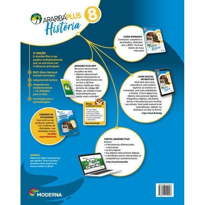 Um projeto multiplataforma conectado aos desafios dos novos tempos O novo Araribá Plus mantém seu compromisso com as metodologias mais eficientes e as melhores tendências educacionais. Sua proposta pedagógica, de acordo com as exigências da Base Nacional Comum Curricular (BNCC), potencializa o trabalho do professor e valoriza o desenvolvimento cognitivo e socioemocional do aluno, promovendo a interdisciplinaridade, o protagonismo e a formação ética e cidadã.