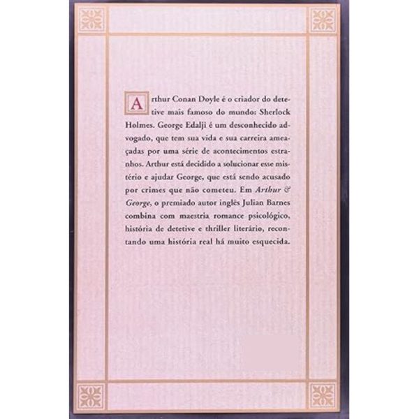 O Arthur que dá título é nada menos que Arthur Conan Doyle, médico e escritor, criador de Sherlock Holmes. No livro, ele contracena com George Edalji, um advogado contemporâneo do escritor. O romance começa como um par de biografias alternadas dos personagens principais. De um lado, está Arthur, o garoto cheio de sonhos que adorava ouvir as histórias que sua mãe contava à beira do fogão, atleta promissor e aluno brilhante. Do outro, George, o filho de um vigário de origem indiana, desprovido de imaginação, pobre, míope e sem amigos. Arthur cresceu disposto a melhorar de vida para poder dar à família uma vida mais confortável. Ele investiu em sua carreira profissional e formou-se médico. Ironicamente, a oftalmologia não lhe trouxe dinheiro ou renome. Mas foi no consultório vazio, à espera de um paciente, que ele começou a criar suas narrativas e deu vida ao detetive Sherlock Holmes. Conan Doyle já era um escritor de renome quando George é acusado de escrever cartas ameaçadoras para sua própria família e de mutilar animais da vizinhança. Mesmo sem provas, George foi preso, julgado e condenado a sete anos de prisão. Saiu da cadeia depois de três anos, mas viu-se no limbo por não poder atuar mais como advogado. Apesar de livre, continuava sendo visto como culpado. Precisava reverter a situação e, assim como milhares de leitores, resolveu apelar para o criador de Sherlock Holmes. O escritor encontrava-se em estado letárgico quando recebeu a carta de George. Arrasado pela morte da mãe de seus dois filhos e consumido pela culpa de ter mantido um amor platônico nos últimos anos de vida da mulher, Conan Doyle se recupera da apatia provocada pelo luto dedicando-se com afinco à recuperação da honra do desconhecido advogado do interior. A partir deste momento, Julian Barnes banca o próprio detetive. Procura a solução do crime, que foi baseado na história verdadeira de George Edalji, ocorrida no início do século XX. Além de mostrar o envolvimento de Conan Doyle no caso, o escritor inglês oferece ao leitor a narrativa completa da vida do criador de Sherlock – até os últimos anos, quando o britânico envolveu-se profundamente com o espiritismo. O cuidado de Barnes com os detalhes na história de Arthur & George seria digno de elogios de Sherlock Holmes. O resultado é um retrato vívido da sociedade inglesa do início do século XX e uma homenagem àquele que ainda é um dos mais populares autores do país