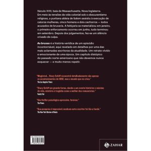 Um dos mais sombrios episódios do passado norte-americano revelado de forma emocionante por uma das mais aclamadas escritoras da atualidade 1692, baía de Massachussets, Nova Inglaterra. A puritana aldeia de Salem assistiu à execução de catorze mulheres, cinco homens e dois cachorros – todos acusados de bruxaria. A feitiçaria se materializou em janeiro, o primeiro enforcamento ocorreu em junho, tudo terminou em setembro. Depois dos julgamentos, fez-se um silêncio crivado de culpa. Com base em meticulosa pesquisa, a renomada jornalista Stacy Schiff, vencedora do Pulitzer, reconstitui com precisão histórica e prosa vibrante os acontecimentos daquele ano sombrio e o surto coletivo que desencadeou o drama das bruxas de Salem. Um retrato em que Schiff traz à baila as ansiedades da América do Norte dos primeiros tempos para compará-las, brilhantemente, com as de hoje. Em nossa época de s sociais, inimigos invisíveis e intolerância às diferenças, esta história sobre o obscurantismo religioso faz mais sentido que nunca. Um capítulo distópico do passado norte-americano que não devemos nunca esquecer – e muito menos repetir. “Magistral… Stacy Schiff reconstrói detalhadamente não apenas os acontecimentos de 1692, mas o mundo que os criou.” The Los Angeles Times “Um thriller psicológico opressivo, forense.” The Times “Stacy Schiff em grande forma, dando a um evento histórico o máximo de vida, mistério e tragédia como a melhor das romancistas.” Vanity Fair “Sua pesquisa é impecável; nenhum outro escritor foi tão a fundo.” The New York Review of Books