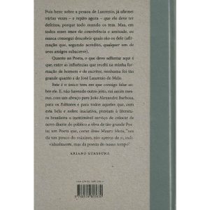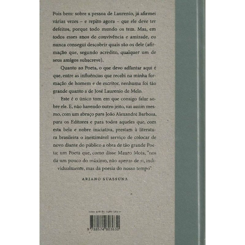 Este livro é uma homenagem a dois intelectuais pernambucanos falecidos em 2006: José Laurenio de Melo, importante poeta, tradutor e editor; e João Alexandre Barbosa, o grande crítico literário que organizou esta antologia. Ela reúne parte de Palhano, a íntegra de As Conversações Noturnas e alguns poemas inéditos. Para Ariano Suassuna, que assina o prefácio, uma das marcas maiores da poética solene e transcendente de Laurenio é “uma espécie de grave existencialismo despedaçado”. Seleção e Organização: João Alexandre Barbosa