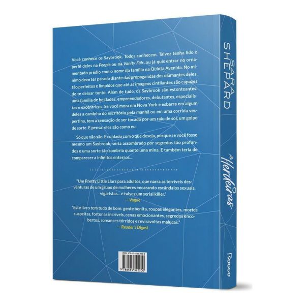 Diamantes são eternos… E a morte também A única coisa mais perfeita que um diamante da Saybrook é a família por trás do império de joias. Lindos, fabulosamente ricos e bem-sucedidos, os Saybrook são o epítome da alta sociedade. Algumas pessoas matariam para ser um deles. Literalmente. No entanto, parece que uma maldição persegue a família, que guarda segredos obscuros e é cercada por tragédias inexplicáveis. E quando, em uma bela manhã de maio, Poppy Saybrook, a mais admirável e perfeita das herdeiras e presidente da empresa, se joga da janela do escritório, todos ficam chocados. Por que alguém que tem tudo acabaria com a própria vida? Então as outras primas recebem um aviso sinistro: “Uma herdeira a menos, faltam quatro.” Foi suicídio… ou assassinato? E quem será a próxima? Aster, a garota linda e inconsequente que nunca trabalhou um dia sequer — e que está encobrindo o segredo mais sombrio de seu pai? Sua irmã mais velha, Corinne, cujo futuro meticulosamente planejado está prestes a desmoronar? Ou talvez Natasha, a rebelde da família, que se deserdou subitamente alguns anos atrás? Ou quem sabe Rowan, a solteira convicta, que mais tinha a ganhar com a morte da prima? Um thriller envolvente e emocionante sobre um grupo de mulheres que precisa descobrir a verdade sobre os segredos mais perigosos da família, antes que percam a única coisa que o dinheiro não pode comprar: suas vidas. “Um Pretty Little Liars para adultos, que narra as terríveis desventuras de um grupo de mulheres encarando escândalos sexuais, vigaristas… e talvez um serial killer.” — Vogue