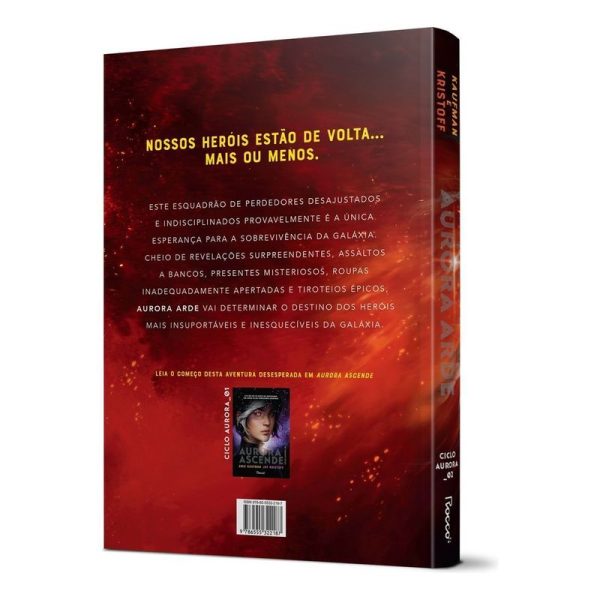 Segundo livro da série Ciclo Aurora. ELES NÃO VÃO DESISTIR SEM LUTAR. Primeiro, a notícia ruim: um antigo mal — sabe, aquele que quer consumir todo o universo — está prestes a se espalhar. A notícia boa? O Esquadrão 312 está pronto para salvar o dia. Eles só precisam lidar com alguns probleminhas antes. Como se livrar de uma matilha de pequenos seres peludos que querem arrancar suas cabeças, por exemplo. Ou fugir de assustadores funcionários corruptos da Agência de Inteligência Global que não vão parar até colocarem as mãos em Aurora. E, para completar, a irmã de Kal arrumou um exército Syldrathi e não está nada feliz em reencontrar seu irmãozinho. Com metade da galáxia atrás deles, o Esquadrão 312 nunca foi tão requisitado. Quando os restos da nave Hadfield são descobertos por nossos heróis, é hora de parar de se esconder. Dois séculos antes, a nave cheia de colonos desapareceu e deixou Aurora como única sobrevivente. Agora, a caixa-preta pode mostrar o caminho para a salvação deles. O tempo é curto e, se Auri não aprender a usar seus poderes como Gatilho logo, nosso querido esquadrão estará mais morto que o Grande Ultrassauro de Abraaxis IV. NOSSOS HERÓIS ESTÃO DE VOLTA… MAIS OU MENOS. Este esquadrão de perdedores desajustados e indisciplinados provavelmente é a única esperança para a sobrevivência da galáxia. Cheio de revelações surpreendentes, assaltos a bancos, presentes misteriosos, roupas inadequadamente apertadas e tiroteios épicos, Aurora arde vai determinar o destino dos heróis mais insuportáveis e inesquecíveis da galáxia. Leia o começo desta aventura desesperada em Aurora ascende.