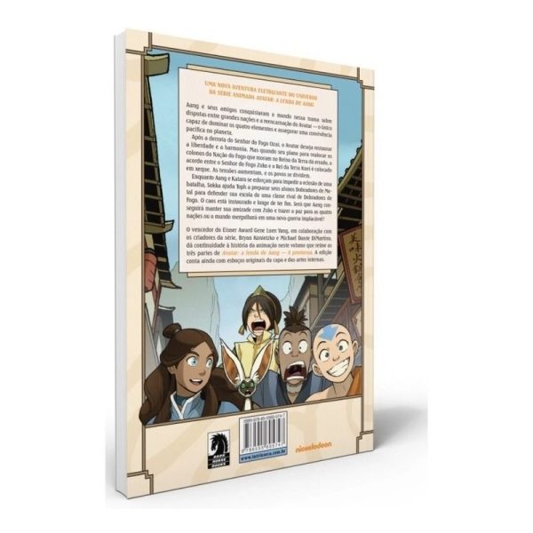 Uma nova aventura eletrizante do universo da série animada Avatar: a lenda de Aang A série animada da Nickelodeon Avatar: a lenda de Aang conquistou milhões de fãs e diversos prêmios ao longo de suas três temporadas. Na trama sobre a reencarnação do Avatar — o único capaz de dominar os quatro elementos e assegurar uma convivência pacífica no planeta —, Aang e seus amigos conseguiram pôr fim à disputa centenária entre as grandes nações ao derrotar o Senhor do Fogo Ozai. Agora, na forma de graphic novel, poderemos conhecer a jornada dos personagens dali em diante. Um ano mais tarde, o Avatar deseja garantir a liberdade e a harmonia restaurando as culturas originais de cada nação. Mas quando seu plano para realocar os colonos da Nação do Fogo que moram no Reino da Terra dá errado, o acordo entre o Senhor do Fogo Zuko e o Rei da Terra Kuei é colocado em xeque. As tensões aumentam, os povos se dividem e a amizade de Aang e Zuko é abalada por uma terrível promessa. Zuko vive sob imensa pressão como o novo Senhor do Fogo. Aang, por sua vez, está em conflito sobre como assegurar o equilíbrio do planeta, ao mesmo tempo que ele e Katara descobrem o que sentem um pelo outro. Com o fim do plano para realocar os colonos, Sokka ajuda Toph a preparar seus alunos Dobradores de Metal para defender sua escola de uma classe rival de Dobradores de Fogo. O caos está instaurado e parece longe de ter fim. Com a ameaça iminente de uma batalha, será que Aang e seus amigos conseguirão chegar a um consenso sobre o mundo que desejam construir ou as quatro nações mergulharão em uma nova guerra implacável? Escrita pelo vencedor do Eisner Award Gene Luen Yang em colaboração com os criadores da animação, o quadrinho foi elogiado pela fidelidade aos personagens, ao universo e às temáticas da série. A edição reúne as três partes de Avatar: a lenda de Aang — A promessa e conta com esboços originais da capa e das artes internas.