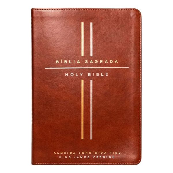 Título do livro : Bíblia Bilíngue Português e Inglês – ACF – Letra Normal – Capa Couro Soft Marrom