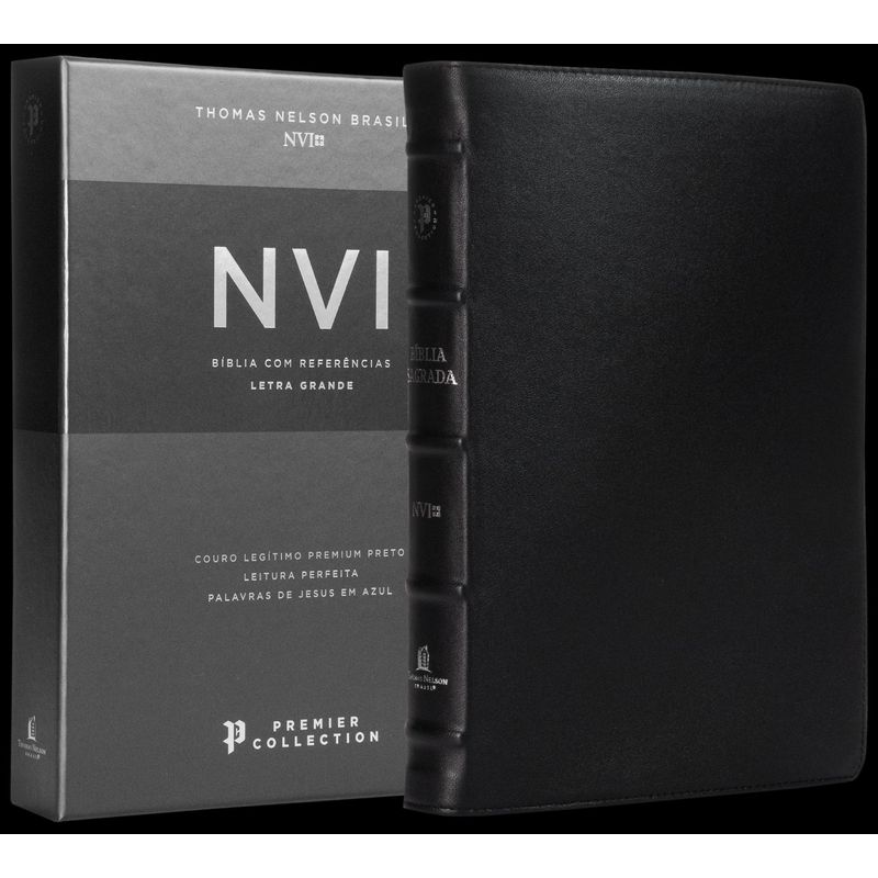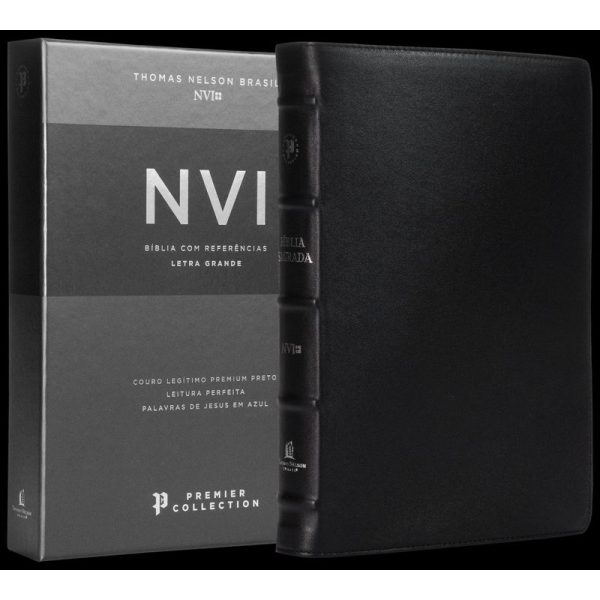 DESFRUTE DE UMA BÍBLIA COM O MÁXIMO DE LUXO E DURABILIDADE! As Bíblias Premier Collection foram confeccionadas para elevar a experiência da leitura bíblica através de acabamentos especiais e materiais nobres. A capa em couro legítimo possui extrema maciez, um convite ao manuseio; cada página, por sua gramatura superior combinada à fonte Leitura Perfeita, proporciona uma experiência elevada para conforto visual. Todas essas características tornam as Bíblias dessa coleção um item essencial e um presente especial que durará de geração em geração. Características: • Texto revisado da Nova Versão Internacional (NVI23). • Palavras de Jesus em azul. • Texto em duas colunas. • Milhares de referências cruzadas. • Fonte Leitura Perfeita em letra grande, uma tipologia exclusiva Thomas Nelson que integra os melhores avanços em tipografia de Bíblias modernas. • Bordas estendidas de 12 cm para proteger as folhas. • Formato que proporciona fácil manuseio e praticidade. • Miolo costurado. • Douração trilateral com cores sobrepostas (vermelho-dourado). • Três fitilhos marcadores largos. • Cuidadosamente embalada em caixa resistente de duas peças e envolvida em um elegante papel protetor.