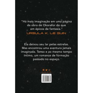 Prepare-se para conhecer Binti, vencedor dos prêmios Nebula e Hugo e finalista do British Science Fiction Association Award. A extraordinária trajetória de uma menina de sua casa até a longínqua Universidade de Oomza, fora dos limites da Terra. Seu nome é Binti, e ela é a primeira de seu povo a ser aceita pela Universidade de Oomza, a instituição superior mais prestigiada da galáxia. Sua aptidão em matemática e habilidade com astrolábios fazem dela a candidata perfeita para empreender esse desafio interestelar. É, realmente, uma oportunidade imperdivel. Mas se decidir partir para explorar as estrelas, passará a viver entre estranhos, pessoas que desconhecem completamente as tradições e os costumes himba – e, principalmente, desistirá de seu lugar entre a familía. No entanto, conhecimento tem um custo, e Binti está disposta a pagar o preço. Mas sua jornada não será fácil. Ela precisará deixar a proteção da vida familiar em sua casa, atravessar as estrelas, afastar-se das fronteiras da Terra, mas isso não é tudo: o mundo que deseja entrar está há muito tempo infestado por Medusas – uma raça alienígena que se tornou seu maior pesadelo. A Universidade de Oomza desonrou as criaturas de uma forma inacreditável, e a viagem estelar de Binti a deixará ao alcance da rainha Medusa. Se Binti quiser sobreviver ao legado de uma guerra não causada por ela, precisará unir os dons e a sabedoria de seu povo à sabedoria dos decanos da Universidade – mas, primeiro, ela precisa chegar viva ao planeta. A edição brasileira de Binti conta os três volumes da trilogia reunidos em um único volume. Da mesma autora de Bruxa Akata, a série é a primeira de Nnedi Okorafor ambientado no espaço. “Há mais imaginação em uma página do trabalho de Okorafor do que em épicos de fantasia.” – Ursula K. Le Guin “Binti é uma leitura esplêndida sobre uma ousada afropolitana no espaço. Uma combinação maravilhosa de aventura extraterrestre e diplomacia africana milenar. Inesquecível!” – Wanuri Kahlu, diretora premiada por trás dos filmes Pumzi e From a Whisper.