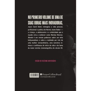 Livro finalista do National Book Award em um de seus livros mais inovadores, Joyce Carol Oates reimagina a vida pessoal, profissional e poética de Norma Jeane Baker — a criança, a adolescente e a celebridade que o mundo viria a conhecer como Marilyn Monroe. Com uma narrativa intensa e conflituosa, a obra é um retrato poderoso sobre um mito hollywoodiano e sobre a realidade por trás de uma mulher extraordinária. No primeiro volume de Blonde, é apresentada a juventude — pontuada por sua complicada relação com a mãe e pelo pai que nunca conheceu —, o casamento e a sexualização precoces e os primeiros trabalhos de uma das figuras mais famosas e trágicas do mundo do cinema.