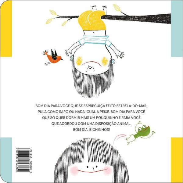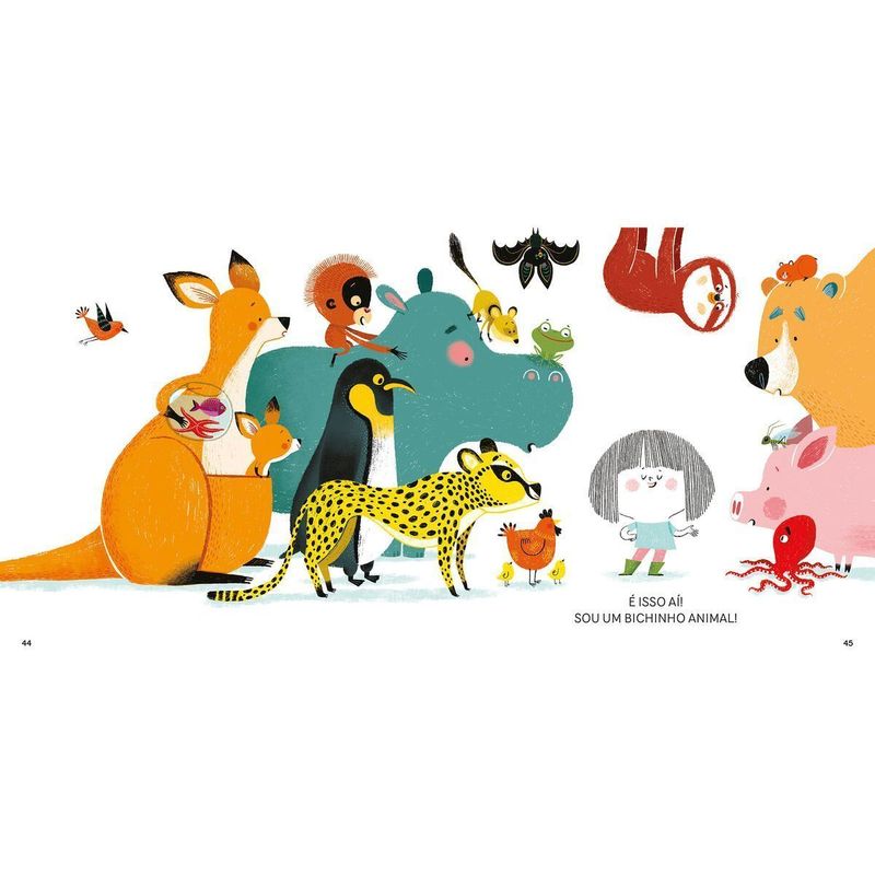 Hora de acordar e aproveitar o dia ao lado de diferentes tipos de animais! Um livro encantador e divertido para toda criança que boceja, brinca, sonha e voa. Plic, plec, ploc! Eu pulo de poça em poça como um sapo, vejo o mundo de pernas para o ar feito um morcego e sonho escondido na minha toca igual a um urso. Quando tudo é novidade e descoberta, identificar semelhanças com os outros e com o entorno nos conforta e nos acolhe. A autora italiana Amandine Piu cria uma sequência de cenas engraçadas mostrando que toda pessoa é meio bicho e todo bicho é meio gente. Texto e imagem apresentam os hábitos do cotidiano, sensações e sentimentos das crianças transpostos nos de pinguins, cangurus, polvos… e vice-versa. Seja na maneira de comer, dormir ou mesmo brincar, somos todos um pouco bichinhos! Indicado para leitores a partir de 0 ano.