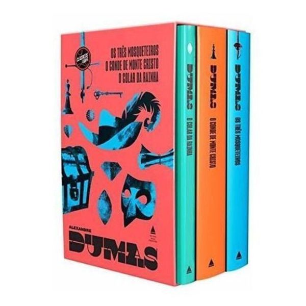 Neste boxe de Alexandre Dumas, estão reunidas em uma versão concisa três obras-primas do romancista e dramaturgo francês. Os três mosqueteiros (1844) narra as aventuras de d’Artagnan, que com seus três amigos, Athos, Porthos e Aramis, enfrenta as ciladas de adversários, sempre a serviço do rei Luis XIII e da rainha Ana d’Áustria. Em O conde de Monte Cristo (1844-45), o jovem marinheiro Edmond Dantès parte em busca de vingança após ser preso injustamente. E O colar da rainha (1849-50) conta a história do declínio da monarquia francesa durante o reinado de Maria Antonieta,”