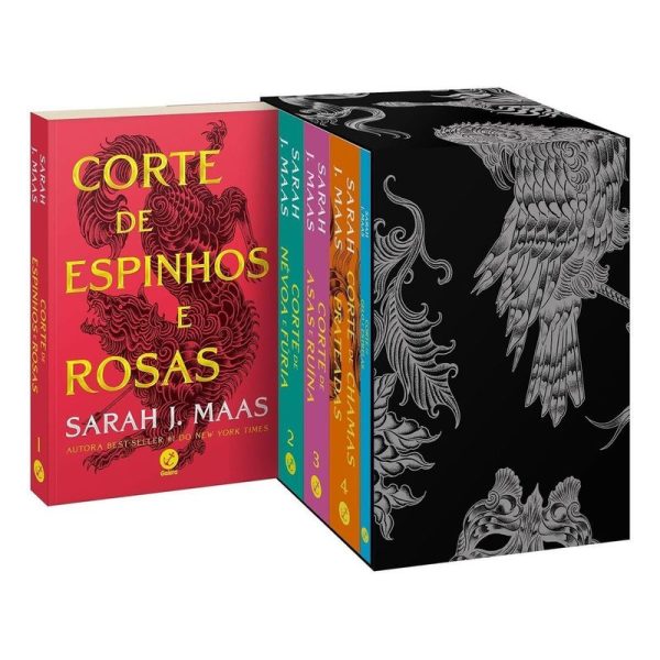 Uma das séries de fantasia mais aclamadas de todos os tempos, agora com capas novas e pela primeira vez com todos os livros da saga reunidos em um Box exclusivo, com marcadores temáticos. Os livros da série Corte de Espinhos e Rosas já venderam mais de 1 milhão de exemplares no Brasil, e continuam a arrebatar o coração de leitores apaixonados. Feyre Archeron é uma caçadora. A pele de um lobo poderia trazer ouro o suficiente para alimentar sua família por um mês inteiro. Mas tirar a vida de uma criatura mágica tem um custo alto, e Feyre acabou de matar o lobo errado… Acompanhe a jornada de Feyre para o sedutor e perigoso mundos dos féericos, onde ela entregará o próprio coração, enfrentará seus medos, e descobrir do que realmente é capaz. Pela primeira vez reunidos em um box, os livros Corte de espinhos e rosas, Corte de névoa e fúria, Corte de asas e ruína, Corte de gelo e estrelas e Corte de chamas prateadas conquistaram uma multidão de leitores ao redor do mundo.
