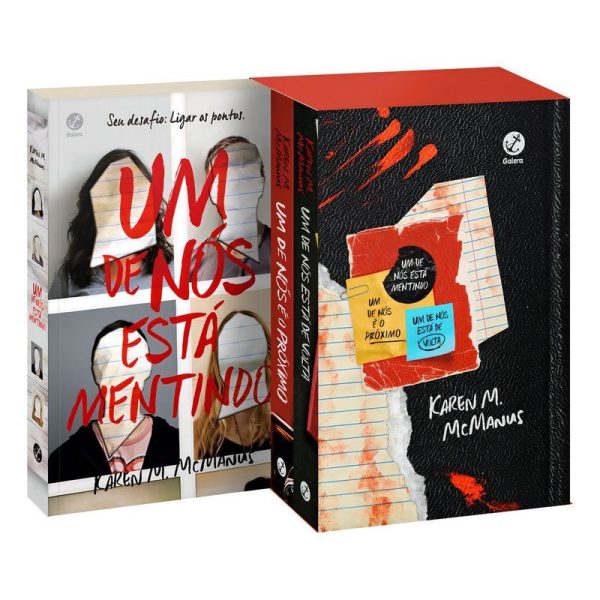 Resolva os mistérios se for capaz. A série Um de Nós, best-seller do New York Times, tem todos os elementos de um suspense de tirar o fôlego: romance, intrigas, disputas e… assassinato! Pela primeira vez reunida em um box exclusivo, conheça uma das séries mais famosas de Karen M. McManus, a rainha do thriller juvenil. Um de nós está mentindo (Vol. 1) Cinco estudantes entram na detenção e apenas quatro saem. Segundo os investigadores, a morte do último aluno não foi um acidente. Ele estava planejando postar revelações sobre os seus quatro colegas de classe no dia seguinte, o que torna cada um deles suspeito. Ou serão eles os bodes expiatórios perfeitos para um assassino que ainda está à solta? Um de nós é o próximo (Vol. 2) Um monte de aplicativos de fofoca surgiu desde a morte de Simon, mas ninguém foi capaz de deixar as pessoas informadas como ele fazia. Ninguém ao menos sabia dos fatos para poder causar intrigas… pelo menos até agora. Dessa vez, não é um aplicativo — é um jogo: Verdade ou Consequência. E se você for esperto, sempre aceitará a consequência. Um de nós está de volta (Vol. 3) Frustrados pelo fraco envolvimento da polícia, amigos, parceiros e aliados inesperados se juntam para enfrentar uma nova ameaça, quando alguém do passado do Quarteto de Bayview ressurge. A história começa a se repetir — e os resultados são mortais. Com muitas reviravoltas, a série Um de Nós explora pontos de vista diferentes, dando ao leitor pistas para desvendar seus mistérios. “Um mistério eletrizante repleto de pistas enigmáticas e diversas reviravoltas. Não consegui parar de ler.” – The Sun “Karen M. McManus cria enredos diversificados e instigantes com maestria.” – The Guardian “Uma combinação irresistível de narrativa, flashbacks e personagens emocionalmente complexos.” – Publishers Weekly