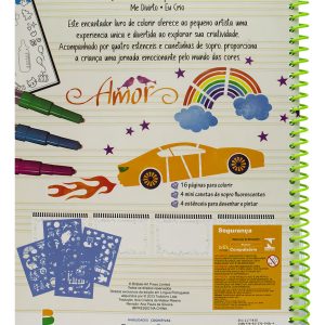 Este encantador livro de colorir oferece ao pequeno artista uma experiência única e divertida ao explorar sua criatividade. Acompanhado por quatro estênceis e canetinhas de sopro, proporciona à criança uma jornada emocionante pelo mundo das cores.