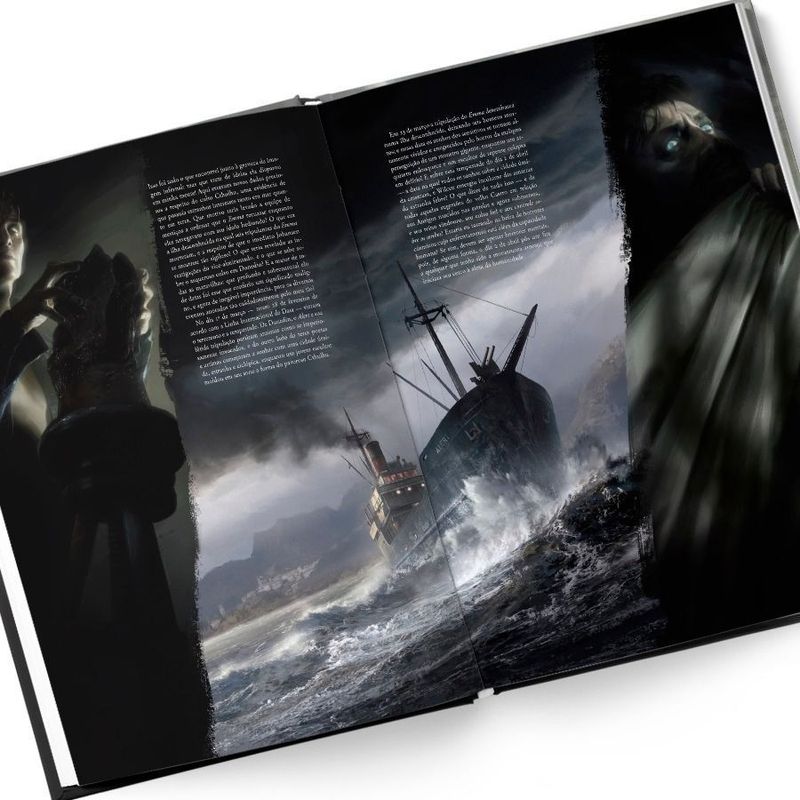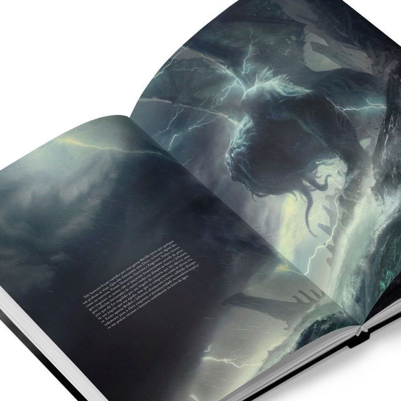 Um horror indizível, inominável assombra a humanidade. Nas trevas, moram aqueles que desejam espalhar a loucura e a destruição. Você está pronto para despertar poderes ancestrais nas profundezas, e ajudar a trazer o fim do mundo? H.P. Lovecraft é um gigante da literatura de terror e da cultura popular. Desde os anos 1920, seus contos e novelas encantam gerações e influenciam inúmeros romances, jogos, quadrinhos, discos e filmes. Seu conto “O Chamado de Cthulhu”, escrito em 1926 e publicado pela primeira vez na revista Weird Tales em 1928, é um clássico absoluto. Agora, o artista francês François Baranger apresenta a versão ilustrada definitiva da história. Esta edição foi publicada originalmente através de financiamento coletivo, que conseguiu arrecadar nove vezes mais do que o autor havia solicitado. Não é difícil entender por quê. A arte de Baranger consegue evocar como poucos o universo sombrio, etéreo e nebuloso descrito por Lovecraft. “De certa forma, imaginei Lovecraft como um diretor de cinema que acabara de me contratar para criar a arte conceitual de sua história. Então reli a história como se fosse um roteiro, selecionando as partes que era importante ilustrar”, explica Baranger. O resultado é esta edição luxuosa, em capa dura e formato grande, que permite apreciar as incríveis pinturas do artista em todos os detalhes, onde a atmosfera aterrorizante do autor salta aos olhos a cada página. “Tentei entrar na mente do autor para melhor transcrever seu universo. É por isso que minha versão é muito fiel. Não tentei modernizar Lovecraft, mas me ater às suas descrições, ao pé da letra.” A história começa em Boston, em 1926. Ao examinar documentos deixados pelo irmão de seu avô, recentemente falecido em circunstâncias misteriosas, Francis Thurston descobre a existência de um culto que adora horrores antigos e indizíveis, como assassinatos misteriosos, rituais de sangue nas profundezas dos pântanos da Louisiana, artistas que caem na loucura após visões de pesadelo e uma cidade ciclópica que surge do mar. Conforme Thurston se aprofunda no material encontrado, percebe que a pesquisa de seu tio-avô chegou muito perto da verdade: nas trevas, existem aqueles que querem acordar o deus adormecido Cthulhu para espalhar a loucura e a destruição por todo o mundo. E ninguém melhor que Baranger para traduzir em imagens toda a grandeza desse apocalipse lovecraftiano. Como afirma o artista John Howe no prefácio da obra, as ilustrações de François Baranger trazem “um foco afiado, alargando o escopo, forçando as fronteiras do imaginável, evocando o horror impronunciável do grandioso despertar de Cthulhu. Sua arte possui uma sobriedade elegante; estas são visões sombriamente evocativas e espetaculares de beleza lúgubre e gigantesca”. O próprio Baranger concorda com o comentário de Howe: “A opinião generalizada de que Lovecraft é um escritor de sugestões, do indizível é, a meu ver, limitada. Mesmo que esse aspecto esteja muito presente em suas obras (coisas escondidas nas sombras, que não podem ser descritas pois enlouquecem quem as vê), há outra parte de seu estilo que eu qualificaria de ‘épica’. Criaturas gigantescas, ciclópicas e cidades perdidas de proporções bíblicas permeiam seus contos, com descrições detalhadas. Com ‘O Chamado de Cthulhu’, não é diferente. Quantas vezes, ao lê-lo, sonhei em ver essas imagens literárias traduzidas visualmente, principalmente na tela grande?” Agora todos nós podemos apreciar e se deleitar com a imaginação de Lovecraft e os sonhos de Baranger transformados nessa bela obra de arte em formato de livro. Um escritor tão universal como Lovecraft não caberia numa única edição. Por isso, a DarkSide® Books atendeu ao chamado de Cthulhu e preparou, além dessa bela edição ilustrada, mais uma assustadora coletânea de contos do mestre do terror cósmico, H.P. Lovecraft: Medo Clássico v. 2 com duas opções em capa dura: Miskatonic Edition e Cosmic Edition.