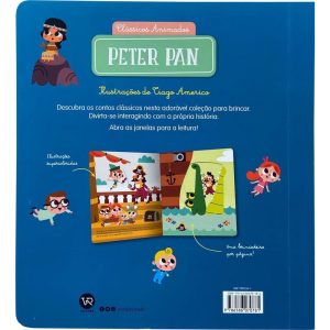 Uma noite, enquanto cuidava de seus irmãos João e Miguel, Wendy viu um menino aparecer pela janela. Ele voava em busca de sua sombra. Era Peter Pan! Peter convidou Wendy e seus irmãos para irem à Terra do Nunca com ele. Juntos, viveram uma incrível aventura. Este lindo livro apresenta uma nova forma de contar. Com ilustrações animadas – janelinhas interativas –, as crianças vão interagir com as personagens e com os elementos gráficos que compõem a narrativa. Clássicos animados: uma coleção para ler e se encantar!