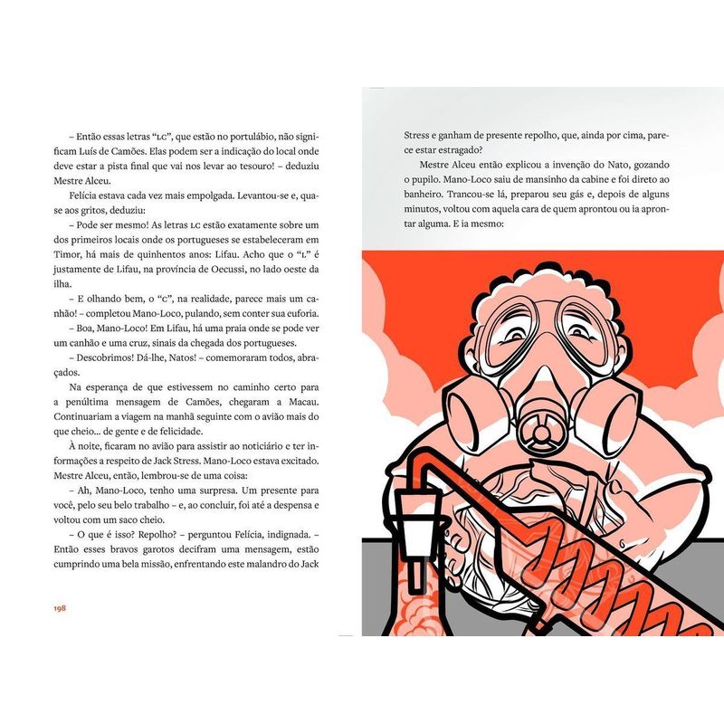 Uma declaração sem pé nem cabeça de uma professora do Timor-Leste que, logo em seguida, desaparece. Uma carta misteriosa deixada pelo poeta Luís de Camões, que revela a existência de um valioso tesouro escondido no Brasil. Um código secreto a ser decifrado nos versos de Os lusíadas. Um objeto que teria poderes mágicos, chamado portulábio. E um grupo de adolescentes, Os Natos, do qual o leitor é convidado a fazer parte. Esses são os ingredientes de uma incrível aventura pelos países de língua portuguesa a bordo do Ícaro, um hidroavião movido a energia solar. Em uma disputa contra o ambicioso empresário Jack Stress, Os Natos vão fazer de tudo para provar que a língua portuguesa ainda está viva nos quatro cantos do mundo. Envolto nessa aventura cheia de mistérios, o leitor interage com o livro para decifrar as pistas.