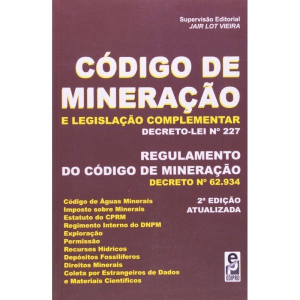 -Código de águas minerais – Imposto sobre minerais – Estatuto do CPRM – Regimento interno do DNPM – Exploração – Permissão – Recursos hídricos – Depósitos fossilíferos – Direitos minerais – Coleta por estrangeiros de dados – Materiais científicos