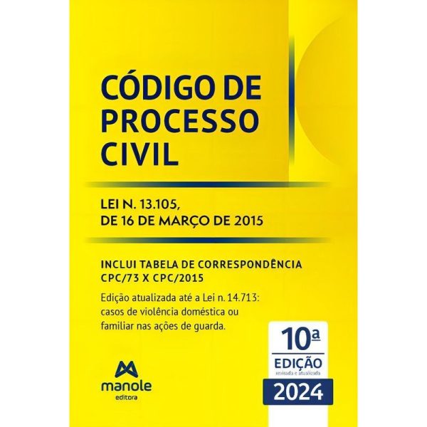 A Editora Manole, prosseguindo com suas publicações jurídicas, apresenta agora seu volume de bolso contendo exclusivamente o Código de Processo Civil (Lei n. 13.105, de 16.03.2015)As alterações desta edição estão de acordo com as Leis ns. 14.620 e 14.711 (títulos executivos) e a Lei n. 14.713 (casos de violência doméstica ou familiar nas ações de guarda). Esta edição está atualizada até o dia 19.12.2023, e o leitor poderá manter-se informado sobre as mudanças na legislação até 31.10.2024.