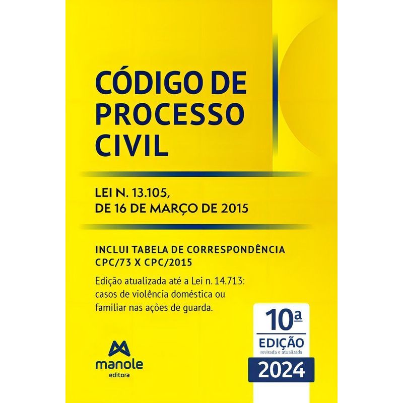 Título do livro : Livro Código de Processo Civil Lei n. 13.105, de 16 de março de 2015, 10ª Edição 2024