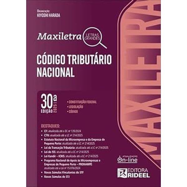 A Editora Rideel, atendendo à necessidade de estudantes e profissionais da área jurídica por obras com letras maiores, que permitam uma leitura agradável no texto legislativo plenamente atualizado, criou a Coleção de Legislação Maxiletra 2025. O projeto gráfico e a organização, feitos por especialistas em cada área, conjugam praticidade e comodidade, e os diversos facilitadores de consulta continuam sendo um diferencial das obras, apreciados pelos operadores, professores e acadêmicos do Direito há décadas.