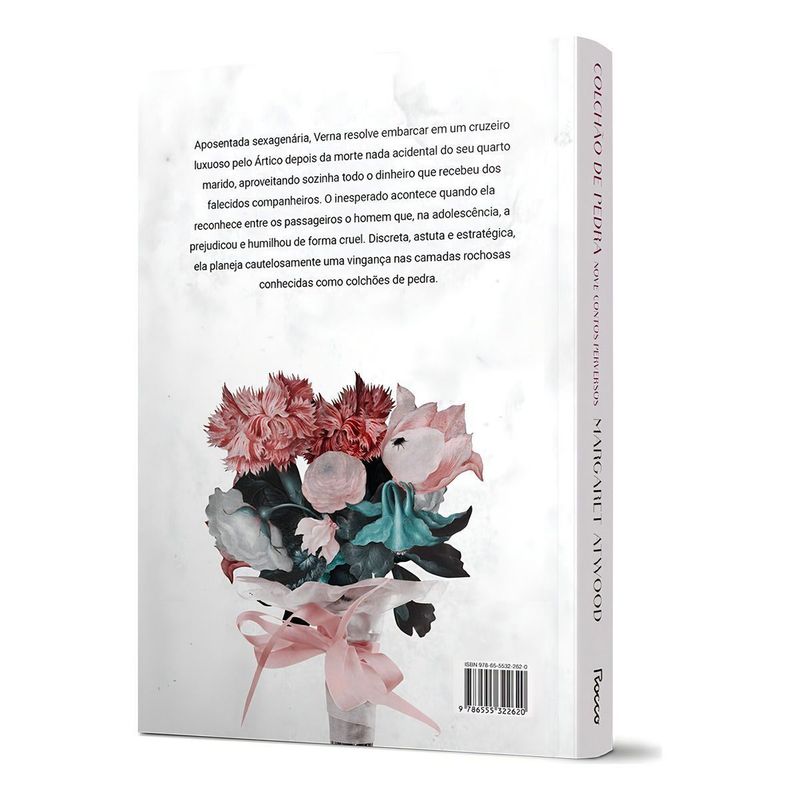Aposentada sexagenária, Verna resolve embarcar em um cruzeiro luxuoso pelo Ártico depois da morte nada acidental do seu quarto marido, aproveitando sozinha todo o dinheiro que recebeu dos falecidos companheiros. O inesperado acontece quando ela reconhece entre os passageiros o homem que, na adolescência, a prejudicou e humilhou de forma cruel. Discreta, astuta e estratégica, ela planeja cautelosamente uma vingança nas camadas rochosas conhecidas como colchões de pedra. “Colchão de pedra: uma almofada fossilizada, formada de camada após camada de algas verde-azuladas que criam um monte ou domo. As mesmas algas verde-azuladas que criaram o oxigênio que eles agora respiram. Não é espantoso?” Nesta coletânea de contos inspirada nas tradições góticas clássicas, Margaret Atwood revela facetas grotescas e perversas da humanidade no seu melhor estilo, evocando vidas e enredos emocionantes. Constance Starr criou uma série literária, Alphinland, que a tornou famosa e respeitada pela crítica. É por essa paisagem fantasiosa, em meio a uma tempestuosa noite de inverno, que ela é guiada pela voz do falecido marido, Ewan, e começa a fundir a realidade com o universo imaginário. Nesse mesmo fio narrativo, acompanhamos o antigo e conturbado relacionamento da escritora com Gavin, passando pela velhice desse poeta boêmio até o momento do seu funeral, em que algumas das mulheres que fizeram parte de sua vida discutem o passado. A partir daí, aberrações da natureza, presenças fantasmagóricas, mãos desencarnadas, rancores, sonhos frustrados e um astuto plano de vingança engendrado pela maldosa viúva Verna permeiam a narrativa, a um só tempo sombria e irreverente, com a notória habilidade de Atwood e sua abordagem destemida sobre as agruras da violência, a mortalidade iminente e os mitos da velhice.