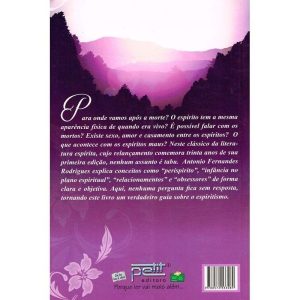 Para onde vamos após a morte? É possível falar com os mortos? Existe sexo, amor e casamento entre os espíritos? O espírito tem a mesma aparência física de quando era vivo? Para onde vão os espíritos maus? Existe inferno? Nesta obra, um clássico de mais de 30 anos, nenhum assunto é tabu para Antônio Fernandes Rodrigues. Ao explicar conceitos como “períspirito”, “infância no plano espiritual”, “relacionamentos” e “obsessores”, o autor responde aos curiosos sobre a doutrina com uma narrativa clarae objetiva. E, importante dizer, com credibilidade, uma vez que se baseia em fontes aceitas universalmente no meio espírita. Trata-se de um guia surpreendente sobre o espiritismo.