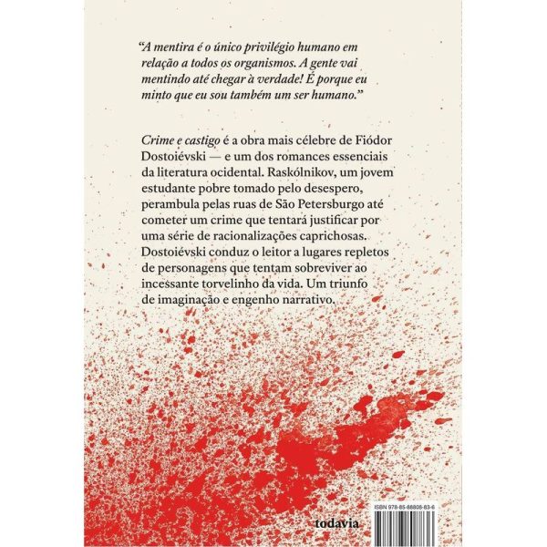 Obra mais célebre de Dostoiévski e um dos romances fundamentais da literatura ocidental, Crime e castigo foi publicado em partes, entre 1865 e 1866, na revista mensal Rússki Viéstnik [O Mensageiro Russo], a mesma que vinha publicando, na época, o romance Guerra e paz, de Liev Tolstói. No livro, Raskólnikov, um rapaz retraído e orgulhoso, se sente esmagado pela pobreza. Ao mesmo tempo, acha que está destinado a um grande futuro e, desdenhoso da moralidade comum, julga ter plenos direitos para cometer um crime – o que fará de uma maneira implacável.