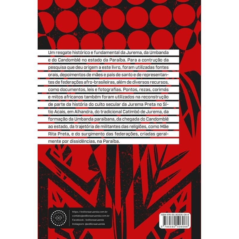 Um resgate histórico e fundamental da Jurema, da Umbanda e do Candomblé no estado da Paraíba. A partir de fontes orais – depoimentos de mães e pais de santo e de representantes de federações afro-brasileiras – e de diversos recursos, como documentos, leis e fotografias, o pesquisador Valdir Lima pretende com este trabalho contribuir para a manutenção da memória das religiões afro-brasileiras. Pontos, rezas, corimas (curimbas) e mitos africanos também foram utilizados na reconstrução de parte da história do culto secular da Jurema Preta no Sítio Acais, em Alhandra, do tradicional Catimbó de Jurema, da formação da Umbanda paraibana, da chegada do Candomblé ao estado, da trajetória de militantes das religiões, como Mãe Rita Preta, e do surgimento das federações, criadas geralmente por dissidências, na Paraíba.