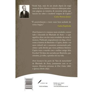 “Edição de bolso de uma das maiores obras da literatura brasileira de todos os tempos. Dom Casmurro é uma obra clássica do Realismo Brasileiro e uma das mais famosas de Machado de Assis. É o romance mais estudado, comentado e discutido de Machado de Assis – o que significa dizer um dos mais estudados da nossa literatura. Publicado originalmente em 1899, o livro conta a história de Bentinho e Capitu, desde o namoro infantil até o casamento atormentado pelo ciúme e pela dúvida que virou polêmica literária: Capitu traiu o marido com o melhor amigo dele, Escobar? Os fatos são narrados por Bentinho, que relembra, já velho, episódios de sua vida. “
