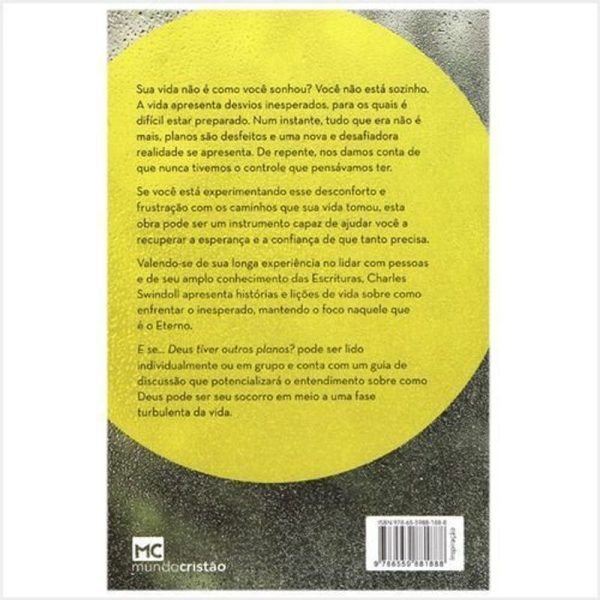 Sua vida não é como você sonhou? Você não está sozinho. A vida apresenta desvios inesperados, para os quais é difícil estar preparado. Num instante, tudo que era não é mais, planos são desfeitos e uma nova e desafiadora realidade se apresenta. De repente, nos damos conta de que nunca tivemos o controle que pensávamos ter. Se você está experimentando esse desconforto e frustração com os caminhos que sua vida tomou, esta obra pode ser um instrumento capaz de ajudar você a recuperar a esperança e a confiança de que tanto precisa. Valendo-se de sua longa experiência no lidar com pessoas e de seu amplo conhecimento das Escrituras, Charles Swindoll apresenta histórias e lições de vida sobre como enfrentar o inesperado, mantendo o foco naquele que é o Eterno. E se… Deus tiver outros planos? pode ser lido individualmente ou em grupo e conta com um guia de discussão que potencializará o entendimento sobre como Deus pode ser seu socorro em meio a uma fase turbulenta da vida.