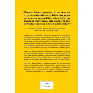 A partir de sua experiência como consultora de comunicação não violenta (CNV) e comunicação consciente, educadora parental e mãe de duas crianças, Elisama Santos propõe uma conversa com pais e mães que desejam construir relações e aprendizados baseados no respeito e no diálogo – e querem estimular autoestima, autonomia, autodisciplina e resiliência em si mesmos e nos filhos. A ideia é que o processo de construção de conhecimento torna-se positivo quando ocorre por meio da empatia e reflexão crítica. Assim, a autora apresenta conceitos que podem ajudar pais e filhos a se aproximarem, conectando-se com os próprios sentimentos e comunicando-os ao outro de forma objetiva e respeitosa: a comunicação não violenta, de Marshall Rosenberg; a atenção plena (mindfulness), do zen-budismo; a disciplina positiva, de Jane Nelsen; e a inteligência emocional, de Daniel Goleman. Este livro é uma alternativa à cultura autoritária que justifica o uso da violência e da repressão como método educativo. Aqui buscam-se caminhos para uma educação mais solidária e compreensiva, acreditando ser possível educar as crianças com consciência, para que as próximas gerações possam colher os frutos de um mundo mais amoroso e justo.