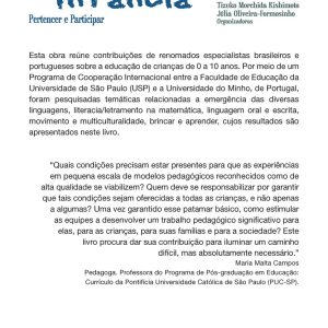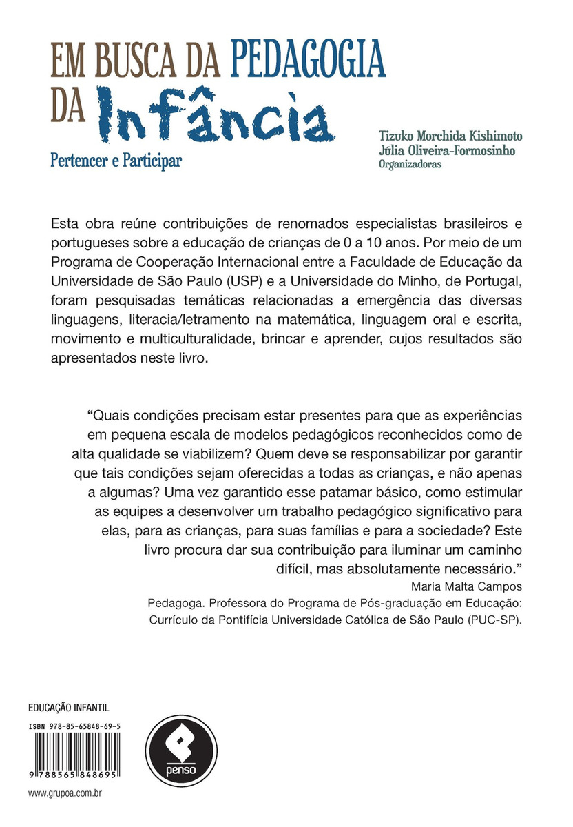 Esta obra reúne contribuições de renomados especialistas brasileiros e portugueses sobre a educação de crianças de 0 a 10 anos. Por meio de um Programa de Cooperação Internacional entre a Faculdade de Educação da Universidade de São Paulo (USP) e a Universidade do Minho, de Portugal, foram pesquisadas temáticas relacionadas a emergência das diversas linguagens, literacia/letramento na matemática, linguagem oral e escrita, movimento e multiculturalidade, brincar e aprender, cujos resultados são apresentados neste livro.