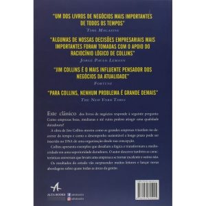 Collins apresenta exemplos que desafiam a lógica e transformam a mediocridade em uma superioridade duradoura. O autor descreve também as características universais que levam uma empresa a se tornar excelente e outras não.