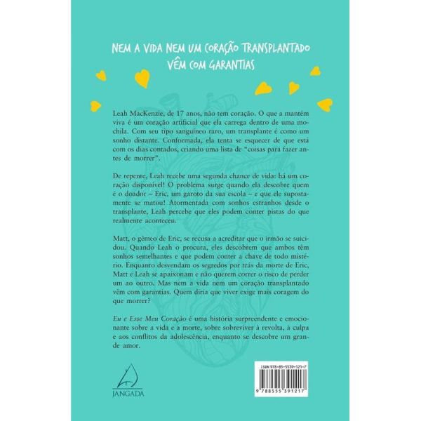 Leah MacKenzie, de 17 anos, não tem coração. O que a mantém viva é um coração artificial que ela carrega dentro de uma mochila. Com seu tipo sanguíneo raro, um transplante é como um sonho distante. Conformada, ela tenta se esquecer de que está com os dias contados, criando uma lista de “coisas para fazer antes de morrer”. De repente, Leah recebe uma segunda chance: há um coração disponível! O problema é quando ela descobre que o doador é um garoto da sua escola – e que supostamente se matou! Matt, o irmão gêmeo do doador, se recusa a acreditar que Eric se suicidou. Quando Leah o procura, eles descobrem que ambos têm sonhos semelhantes que podem ter pistas do que realmente aconteceu a Eric. Enquanto tentam desvendar esse mistério, Matt e Leah se apaixonam e não querem correr o risco de perder um ao outro. Mas nem a vida nem um coração transplantado vem com garantias. Quem diria que viver exige mais coragem do que morrer?
