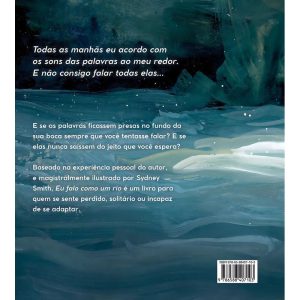 Um retrato sensível do isolamento e do estigma sentido por uma criança com dificuldades de fala. Como você se sentiria se as palavras ficassem presas no fundo da sua boca sempre que tentasse falar? E se elas nunca saíssem do jeito que você espera? Em seu primeiro livro ilustrado, o premiado autor canadense Jordan Scott descreve em linguagem habilmente poética a história de um menino com dificuldades na fala, que encontra em seu pai o alicerce capaz de reconectá-lo com o mundo a seu redor e ajudá-lo a encontrar sua voz. Baseado na experiência pessoal do autor e magistralmente ilustrado por Sydney Smith, Eu falo como um rio é um livro para quem se sente perdido, solitário ou incapaz de se adaptar.