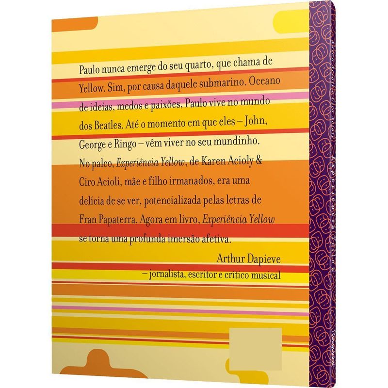 O mais novo título da bem-sucedida coleção Caras e Máscaras, que já rendeu a Karen Acioly diversos prêmios, como o Lucia Bennedetti de melhor Livro de Teatro e o Altamente Recomendável da Fundação Nacional do Livro Infantil e Juvenil (FNLIJ), Experiência Yellow é uma viagem beatlemaníaca com a companhia ilustre dos Besouros em pessoa — ou em pensamento… Paulo é um jovem criativo, beatlemaníaco, sonhador, músico e poeta cheio de ideias, mas não consegue sair do seu quarto, do seu “submarino”. Apaixonado por Nina, ele tem dificuldade em acreditar nas próprias qualidades, até que John, George e Ringo surgem inesperadamente no seu quarto e o surpreendem: falta um Beatle para compor a banda. Mas o quarto elemento terá que se provar e descobrir se é capaz de estar no nível dos outros. Paulo e os parceiros embarcam então em uma expedição pelo rio São Francisco cheia de musicalidade que une Rio de Janeiro, Reino Unido e Amazônia, tudo em busca da sua identidade e daquele borogodó tão especial que só o Brasil podia acrescentar aos jovens de Liverpool.