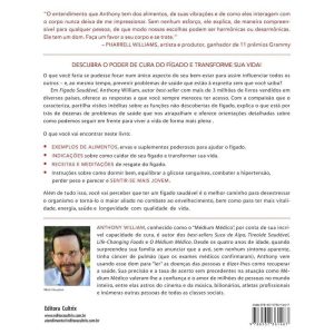Em O Médium Médico – Fígado Saudável, Anthony William, autor best-seller com mais de 3 milhões de livros vendidos em diversos países, oferece o mapa para seu bem-estar. Ele compartilha com o leitor visões inéditas sobre as funções não descobertas do fígado, explica o que está por trás de dezenas de problemas de saúde e oferece orientações detalhadas sobre como podemos seguir em frente para viver a vida de forma mais plena. O livro enfatiza que um fígado saudável é o melhor caminho para desestressar o organismo e torná-lo o maior aliado no combate ao envelhecimento, bem como para ter mais vitalidade, energia, saúde e longevidade com qualidade de vida.