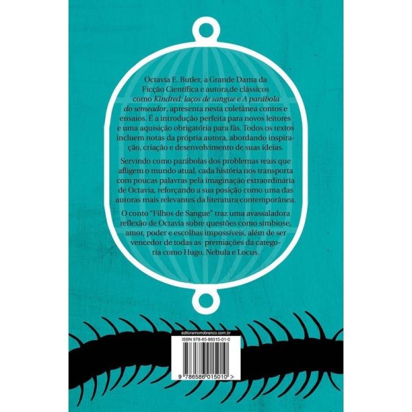 Octavia E. Butler, a Grande Dama da Ficção Científica e autora de clássicos como Kindred: laços de sangue e A Parábola do Semeador, agora nos apresenta uma incrível coletânea de contos e ensaios, uma perfeita introdução para novos leitores e uma aquisição obrigatória para fãs. “Filhos de Sangue”, um dos grandes destaques da coletânea, traz uma avassaladora reflexão de Octavia sobre questões como simbiose, amor, poder e escolhas impossíveis. O conto venceu todas as premiações da categoria como Hugo, Nebula e Locus e é constantemente enaltecido como um de seus melhores trabalhos. Todos os contos incluem notas da própria autora, abordando a inspiração, criação e desenvolvimento de suas ideias. Servindo como parábolas dos problemas reais que afligem o mundo atual, cada história nos transporta com poucas palavras pela imaginação extraordinária de Octavia, reforçando a sua posição como uma das autoras mais relevantes da literatura contemporânea.