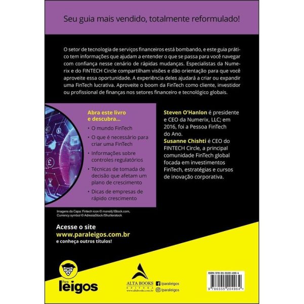 O setor de tecnologia de serviços financeiros está bombando, e este guia prático tem informações que ajudam a entender o que se passa para você navegar com confiança nesse cenário de rápidas mudanças. Especialistas da Numerix e do FINTECH Circle compartilham visões e dão orientação para que você aproveite essa oportunidade. A experiência deles ajudará a criar ou expandir uma FinTech lucrativa. Aproveite o boom da FinTech como cliente, investidor ou profissional de finanças nos setores financeiro e tecnológico globais. Abra este livro e descubra: Informações sobre controles regulatórios Técnicas de tomada de decisão que afetam um plano de crescimento Dicas de empresas de rápido crescimento Sobre os autores: Steven O’Hanlon é presidente e CEO da Numerix, LLC; em 2016, foi a Pessoa FinTech do Ano. Susanne Chishti é CEO do FINTECH Circle, a principal comunidade FinTech global focada em investimentos FinTech, estratégias e cursos de inovação corporativa VANTAGENS DE USAR UM PROVEDOR FINTECH Os provedores FinTech auxiliam instituições financeiras e de seguro identificando áreas problemáticas e oferecendo soluções a elas ou determinando futuras oportunidades de crescimento. Fazem isso porque têm um amplo alcance em todo o setor. Tal alcance existe porque eles: • Trabalham com muitos clientes em todo o setor e veem os mesmos problemas repetidas vezes. • São focados nas operações e na infraestrutura de uma organização. • Normalmente podem tomar decisões difíceis que são políticas demais para que a equipe interna as veja com objetividade. • Adotam uma abordagem global para resolver os problemas de tecnologia da empresa cliente. • Podem ser 100% focadas no cliente e agregar valor.