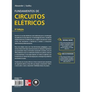 Este livro e uma das referencias mais tradicionais para a conceituacao da analise de circuitos eletricos. A metodologia de ensino, mantida de edicoes anteriores, foi elaborada com o objetivo de exercitar o senso critico dos estudantes e habilita-los a analisar e interpretar determinados problemas da area. Trata-se de leitura essencial para estudantes de engenharia eletrica que desejam compreender melhor a teoria sobre o tema e desenvolver habilidades basicas de projeto. Razoes para comprar: Conteudo pedagogico (termos-chave e formulas mais importantes em destaque, hipertextos que apresentam dicas ou lembretes conectando conceitos); Cerca de 400 problemas novos ou modificados divididos em praticos, teoricos e computacionais (programas: Matlab, Pspice e KCIDE); Secao especial, em todos os capitulos, que fundamenta um metodo de seis etapas para a resolucao de problemas envolvendo circuitos.