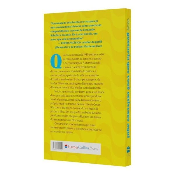 Quando a década de 1980 começa a dar as caras no Rio de Janeiro, o tempo é de contradições. À efervescência musical e a uma febril vontadede viver, unem-se a instabilidade política, a aterrorizadora epidemia de aids e o aumento do tráfico nas favelas. E cinco personagens, de idades diferentes, aspirações diferentes, mundos diferentes, veem a vida mudar completamente. Inácio, apaixonado por Baby, larga a faculdade de engenharia quando conhece César, produtor musical gay que, como Baby, busca encontrar o próprio lugar no mundo. Selma, mãe de César, lida com o abandono do marido e o medo de perder o filho. Em seu prédio, trabalha Rosalvo, paraibano recém-chegado à Rocinha em busca do assassino de sua filha trans.Gostaria que você estivesse aqui é um romance sobre perder a inocência e entregar-se ao mundo por inteiro.