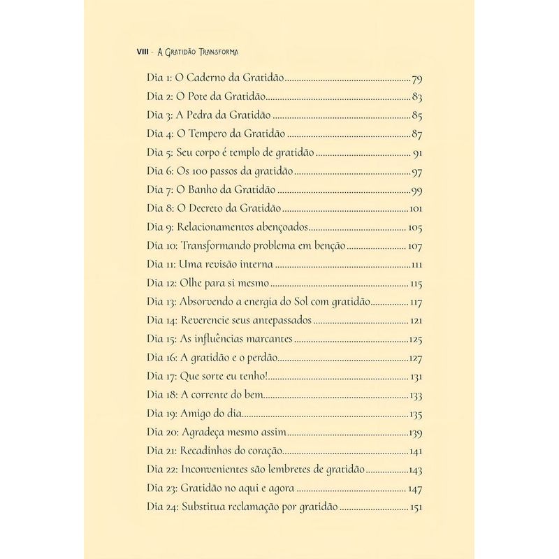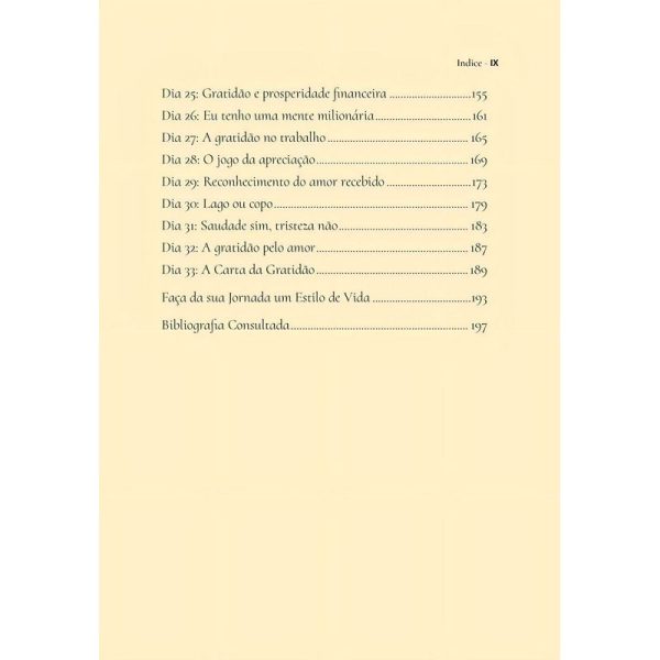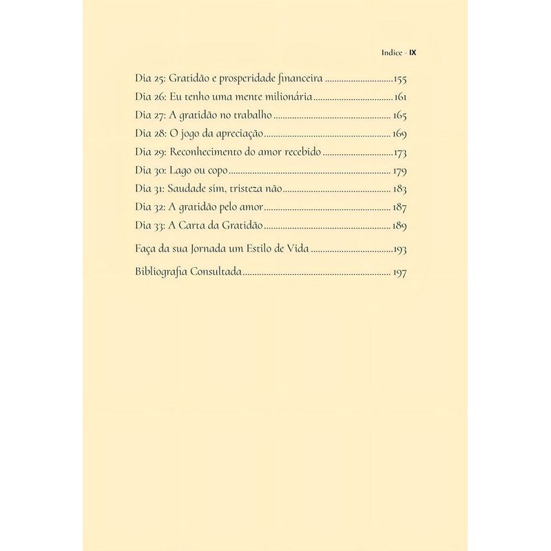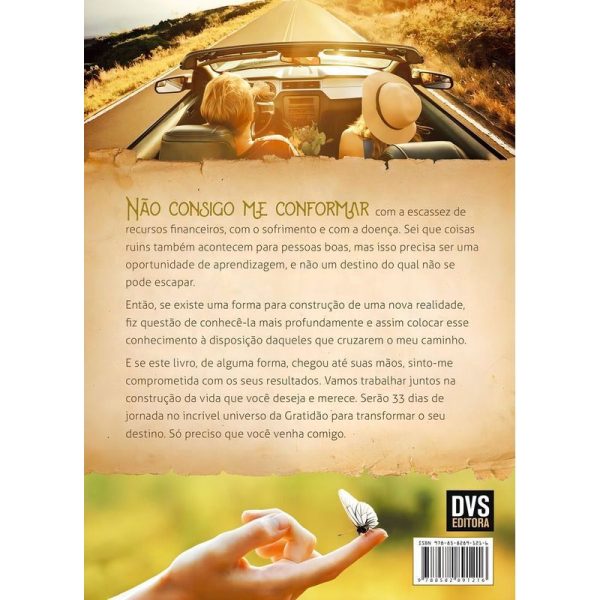 Você que não consegue se conformar com a escassez de recursos financeiros, com o sofrimento e com a doença. Coisas ruins também acontecem para pessoas boas, mas isso precisa ser uma oportunidade de aprendizagem, e não um destino do qual não se pode escapar. Então, se existe uma forma para construção de uma nova realidade, a autora fez questão de conhecê-la mais profundamente e assim colocar esse conhecimento à disposição daqueles que cruzarem o seu caminho. Vamos trabalhar juntos na construção da vida que você deseja e merece. Serão 33 dias de jornada no incrível universo da Gratidão para transformar o seu destino.